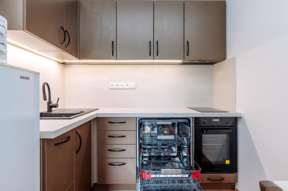 Apartmán má 1 ložnici pro 4 osoby, obývací pokoj s rozkládacím gaučem, kuchyň s veškerým vybavením, myčkou nádobí, mikrovlnnou troubou, posezení, TV s plochou obrazovkou a koupelnu se sprchou.