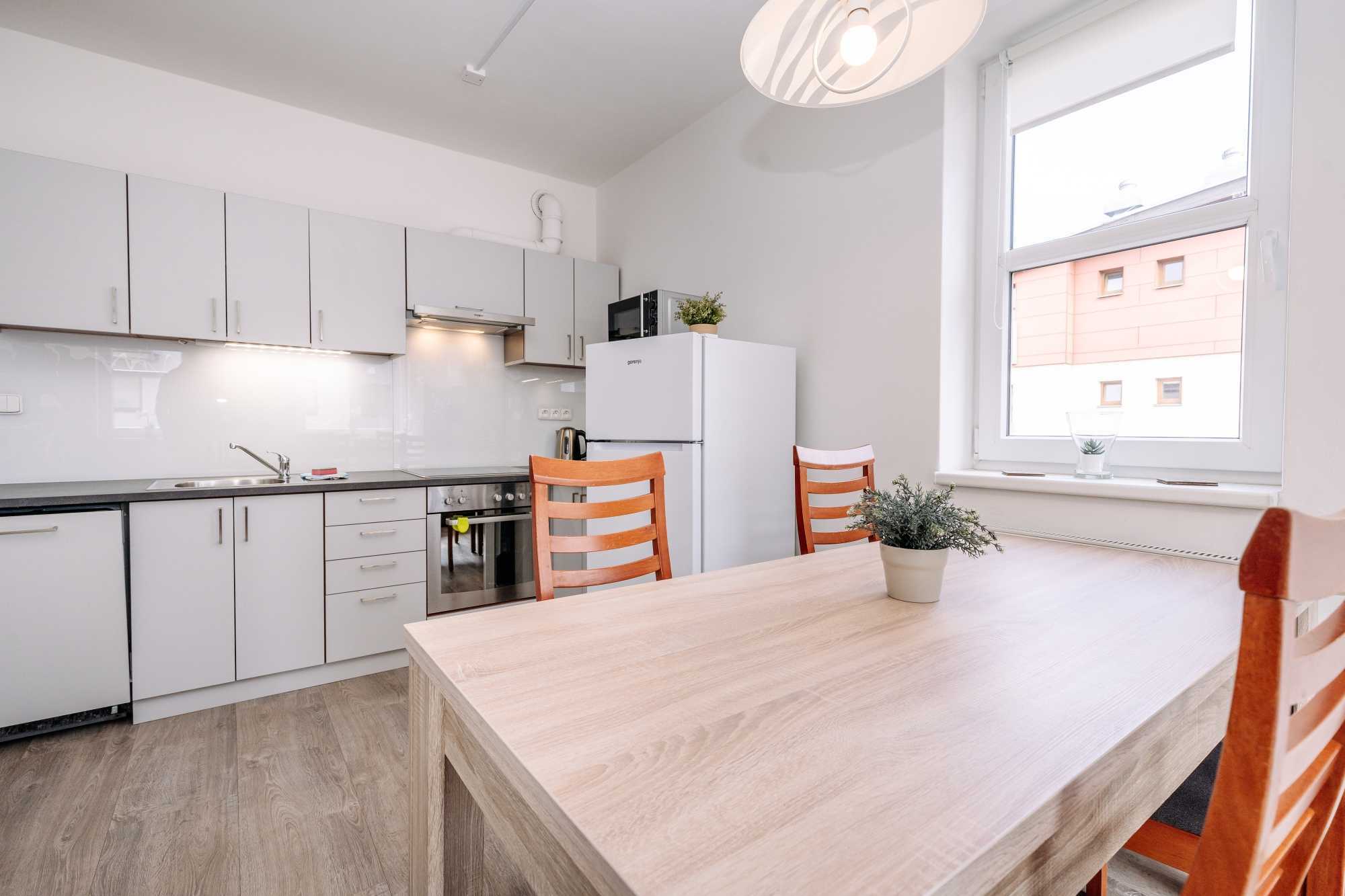 Apartmán má 1 ložnici pro 4 osoby, obývací pokoj s rozkládacím gaučem, kuchyň s veškerým vybavením, myčkou nádobí, mikrovlnnou troubou, posezení, TV s plochou obrazovkou a koupelnu se sprchou.