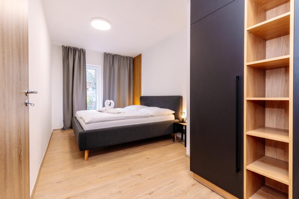 Apartmán má 1 ložnici pro 2+2 osoby, obývací pokoj s velkou sedačkou, kuchyň s veškerým vybavením, myčkou, mikrovlnnou, TV s plochou obrazovkou a koupelnu vanou. . Předností je luxusní prostředí apartmánu a dále nadstandardní privátní terasa s výhledem na přilehlý rybník. Toto místo nabízí pohodovou a nerušenou relaxaci.